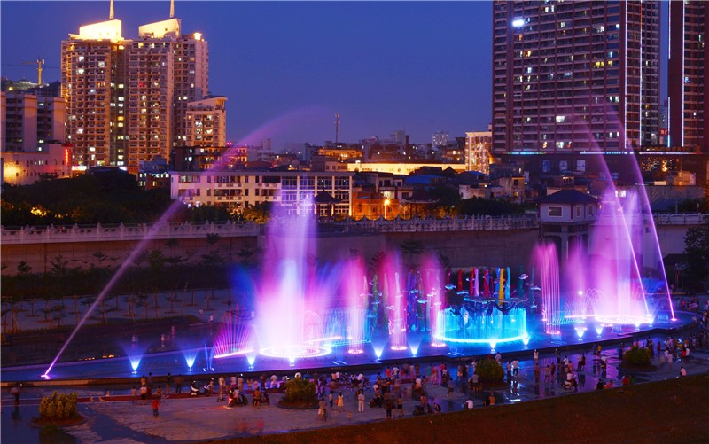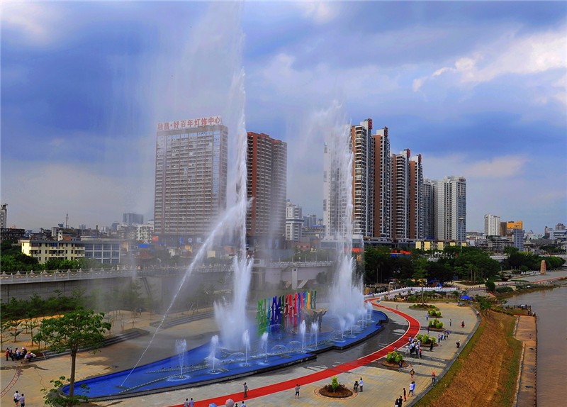 南寧市邕江綜合整治和開發(fā)利用精品示范工程雕塑噴泉廣場工程:邕江雕塑音樂噴泉廣場位于南寧邕江北大橋底東側(cè),占地約1500平方米,蓄水量約1000立方米,中心水柱最高可噴60米,是南寧市的又一標(biāo)志性景觀。